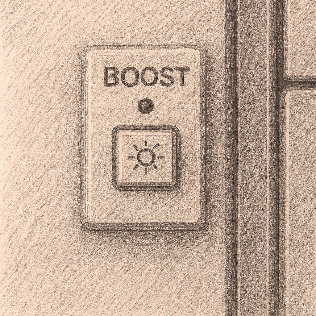- Look for the red light beside the fridge. If it’s on, press the button above it to switch on the booster.
